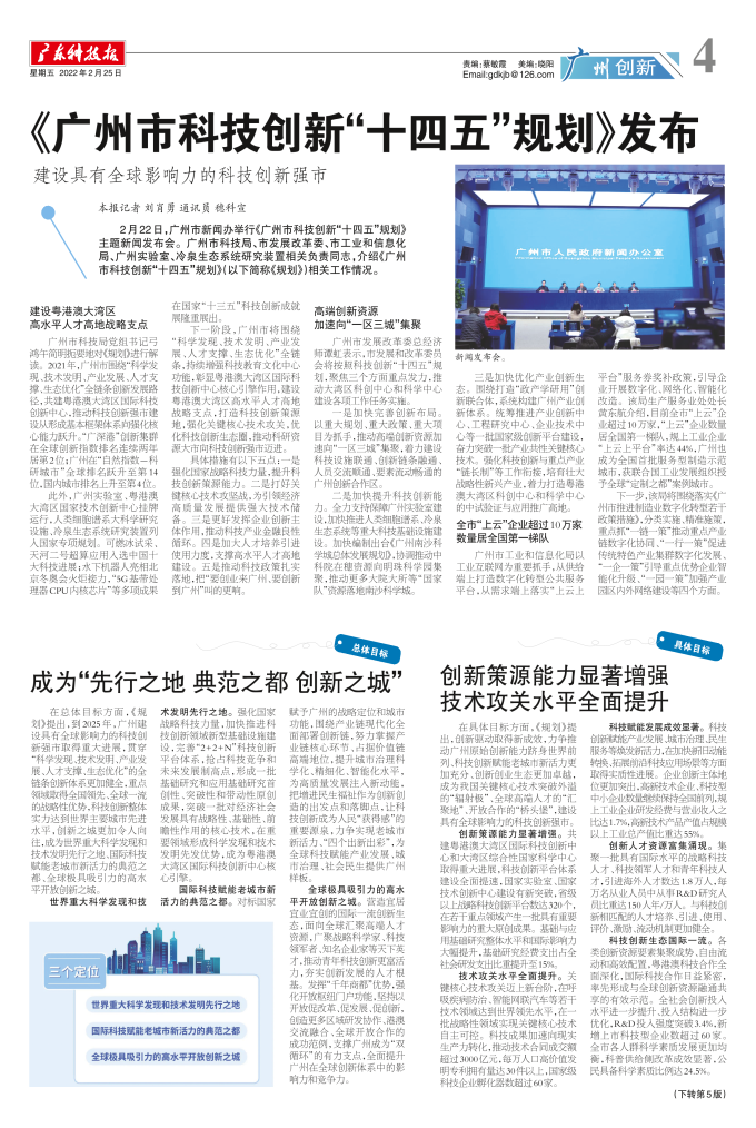 《广州市科技创新“十四五”规划》发布 建设具有全球影响力的科技创新强市
