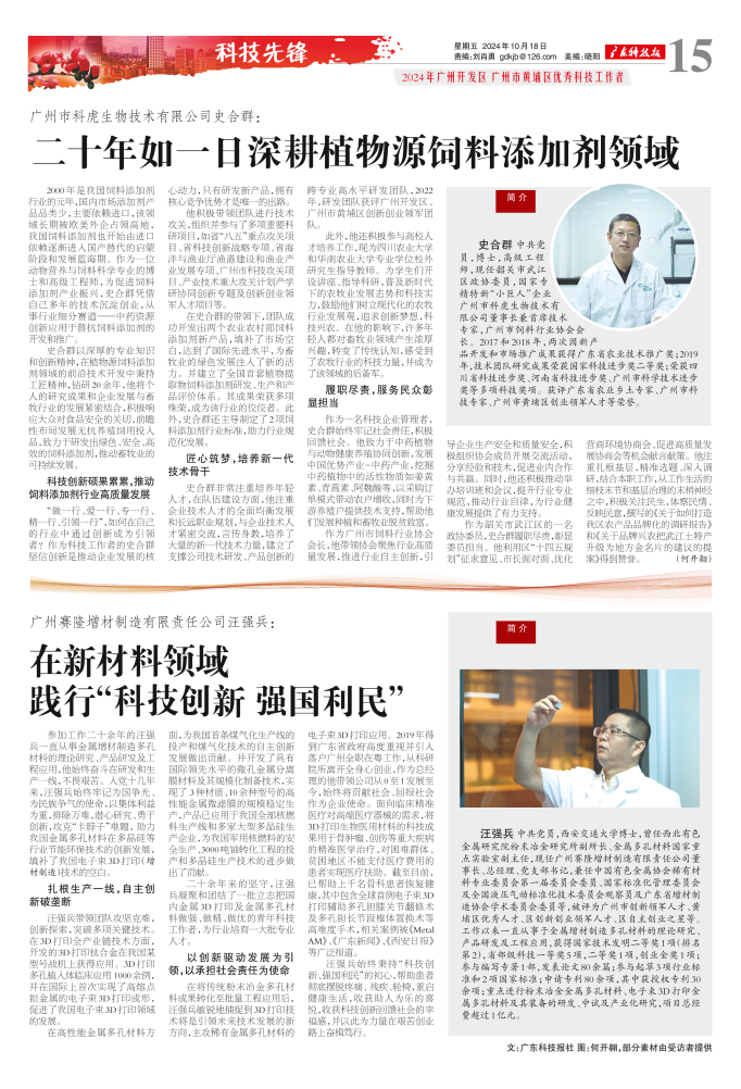 广州赛隆增材制造有限责任公司汪强兵:在新材料领域 践行“科技创新 强国利民”