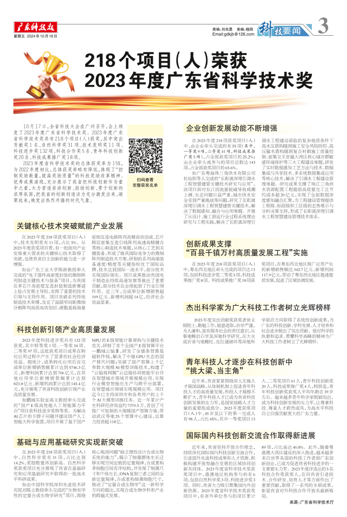 218个项目(人)荣获 2023年度广东省科学技术奖
