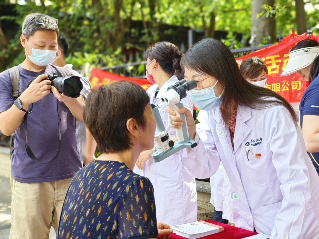 在活动现场设置的眼科义诊点,来自中山眼科中心的专家们为前来咨询的视障者和社区居民提供了免费的眼科检查和咨询服务,并向他们普及正确的用眼护眼知识和眼疾预防方法,介绍了当今眼科的先进技术。视障者和辖区居民纷纷参与,积极了解学习如何保护视力,提高眼健康意识。