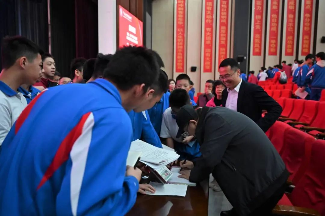 △讲座结束,圈粉无数,同学们纷纷求签名的场景秒变“大型追星现场”