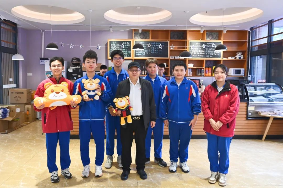 △同学们在“附时光”热情邀请方院士品尝自己亲手做的咖啡,与院士畅谈并合影留念