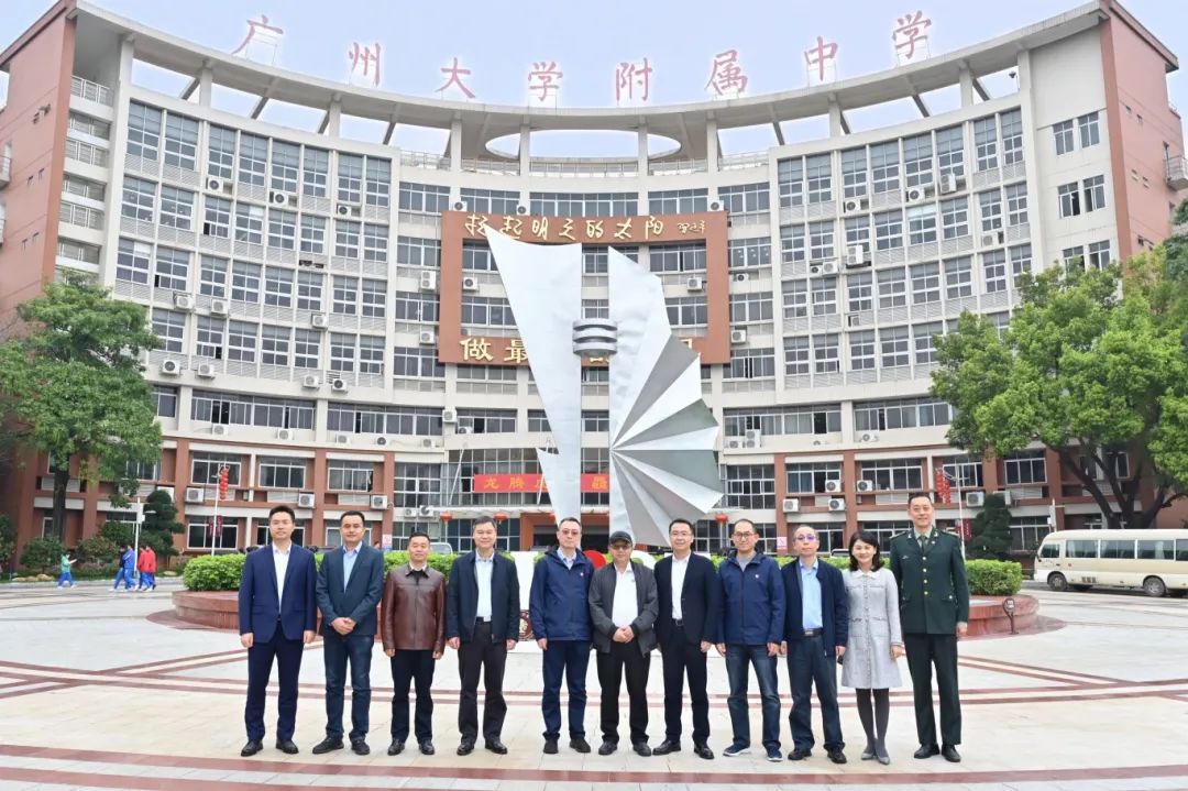 △方滨兴院士在广州大学副校长田志宏,广州大学网络空间先进技术研究院院长鲁辉,广州大学人事处处长、广大附中党委书记王国栋,广大附中校长欧卫国的陪同下莅临我校,参观校史馆、"附时光"、学生科创劳动实验中心等地